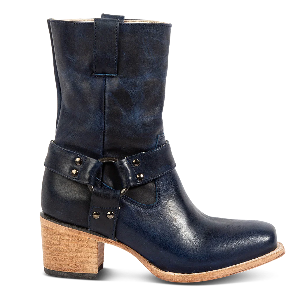 Simple yet stylish, the DARCY boot is a wardrobe staple. Designed with a studded ankle harness, leather pull straps, an inside zip closure and a square toe. This boot is just as easy to dress up or wear down.
