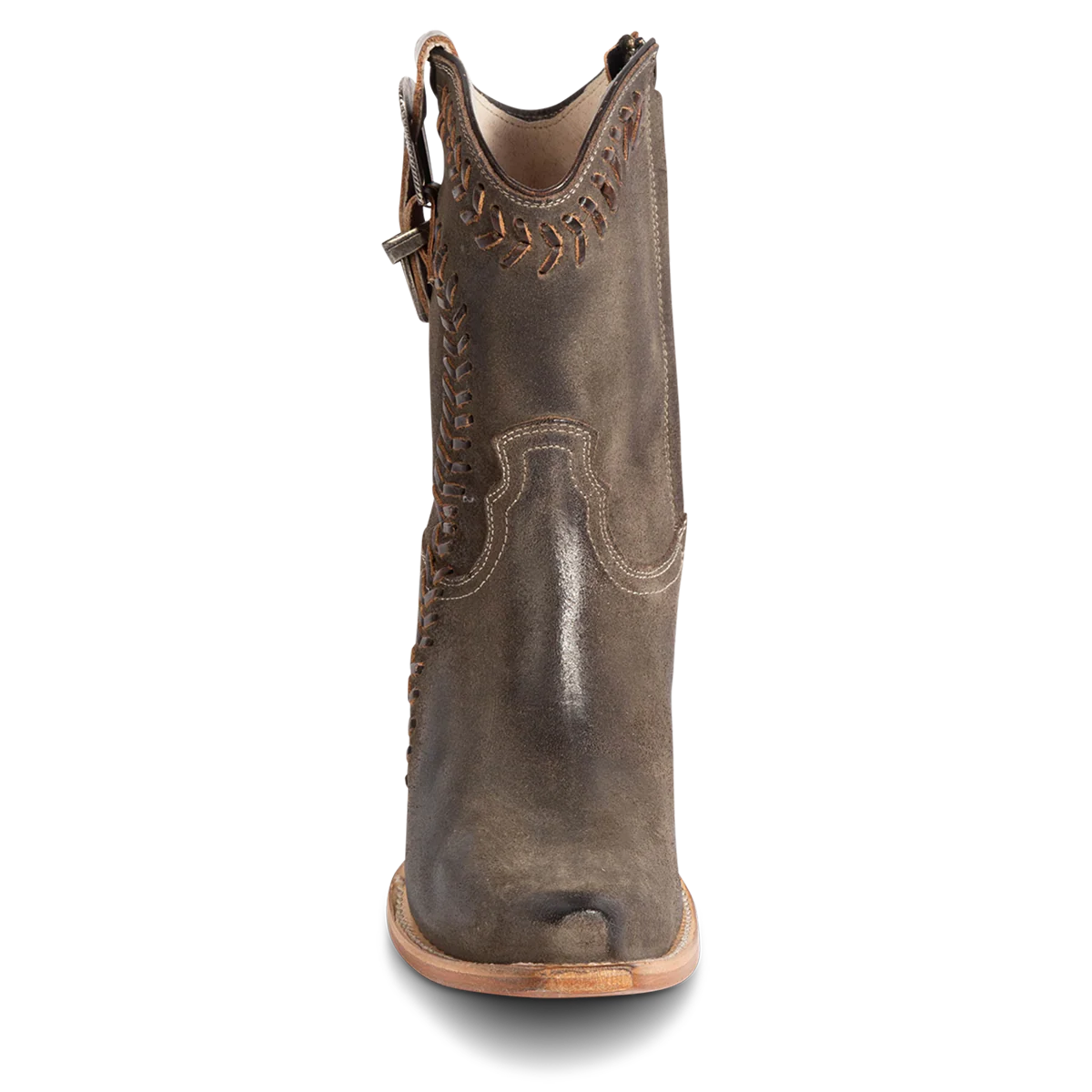 A standout boot that’s all in the details—FREYA. Designed with a brushed suede upper, it balances effortless vintage appeal with a structured silhouette. Leather whip stitching along the shaft adds dimension and a nod to craftsmanship, while the classic snip toe refines the profile. Finished with an embossed metal buckle for a subtle decorative touch.