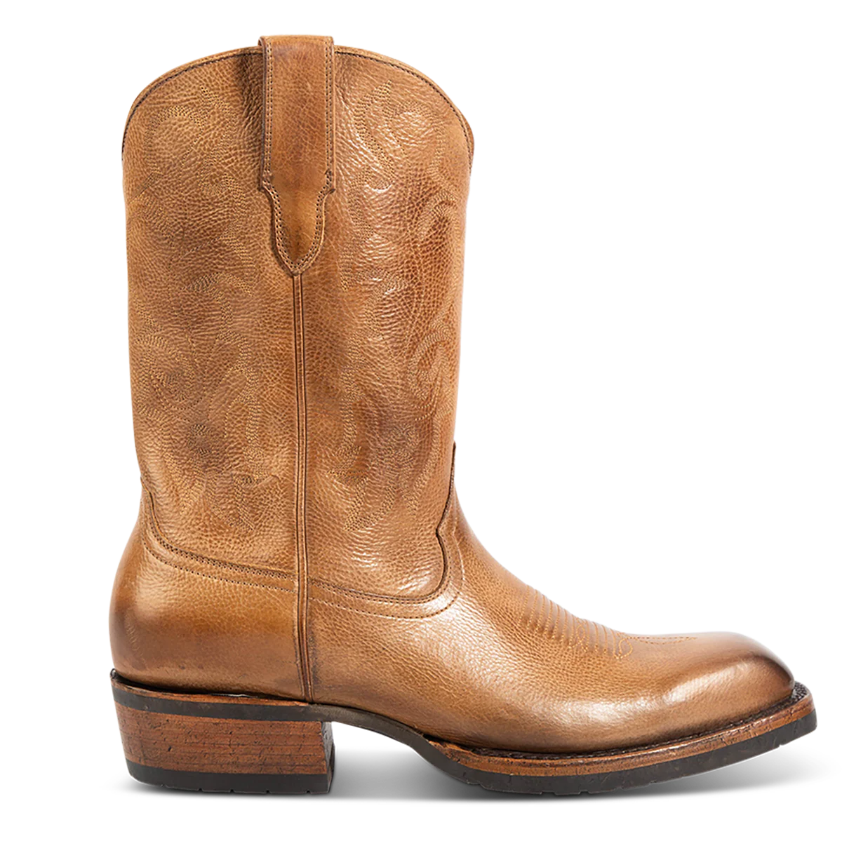 Meet a real character - JAMES. This square toe boot was handcrafted with 100% full-grain leather and complimentary shaft stitching. Completed with a rubber sole and leather pull straps.