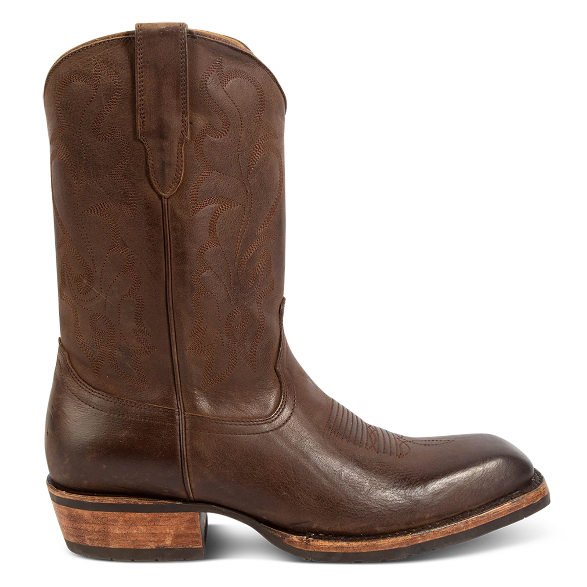 Meet a real character - JAMES. This square toe boot was handcrafted with 100% full-grain leather and complimentary shaft stitching. Completed with a rubber sole and leather pull straps. Notice the scuffs and marks on your new boots? This boot features intentional distressing through our rock tumbling process that gives them unique character. Every pair comes with its own one-of-a-kind finish that is no accident.