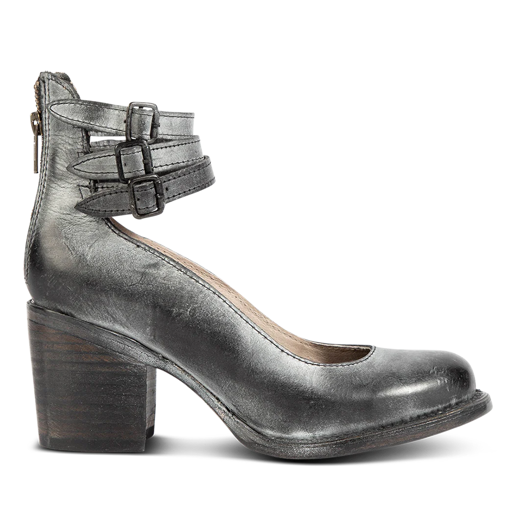 Simple, but never boring - RANDI. Designed with an open construction, this mid-heel shoe creates a clean feminine silhouette with its leather ankle straps and round toe. Finished with metal adjustable buckles and a back zip closure.