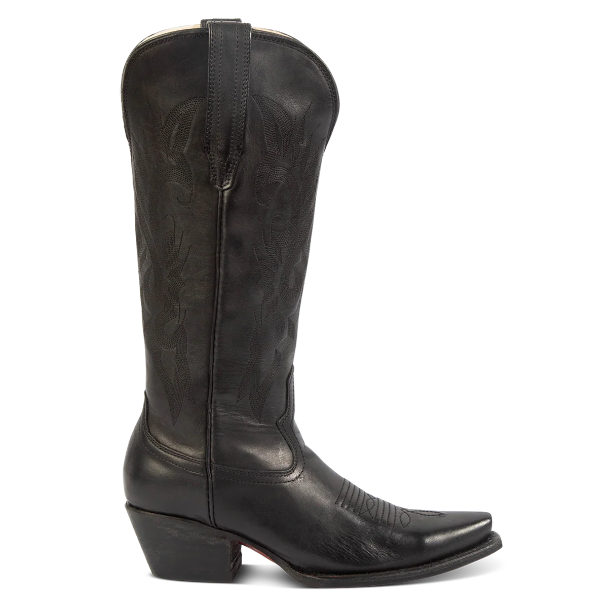 WOODLAND - an outlaw of the Wild West. This Most Wanted boot is the perfect ally with a western silhouette and traditional snip. Fashioned with decorative stitching and leather pull straps, this low heeled boot is ready for any contest.