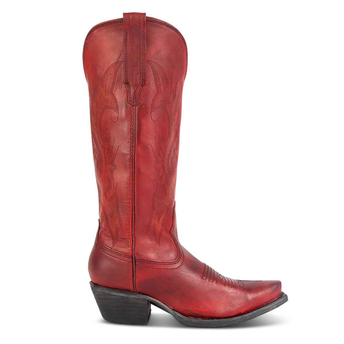 WOODLAND - an outlaw of the Wild West. This Most Wanted boot is the perfect ally with a western silhouette and traditional snip. Fashioned with decorative stitching and leather pull straps, this low heeled boot is ready for any contest.